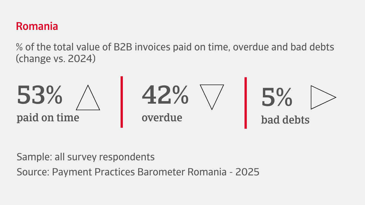- Among companies in Romania, a cautious approach to customer payment risk management is key, but persistent delays and working capital management issues pose liquidity challenges